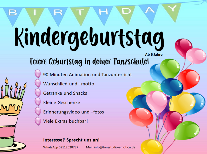 - Dauer: 1,5 Stunden Tanzen und Animation - bis 8 Kinder - Wunschlied - Freigetränke - Erinnerugsvideo und -fotos - kleine Geschenke - viele Extras buchbar